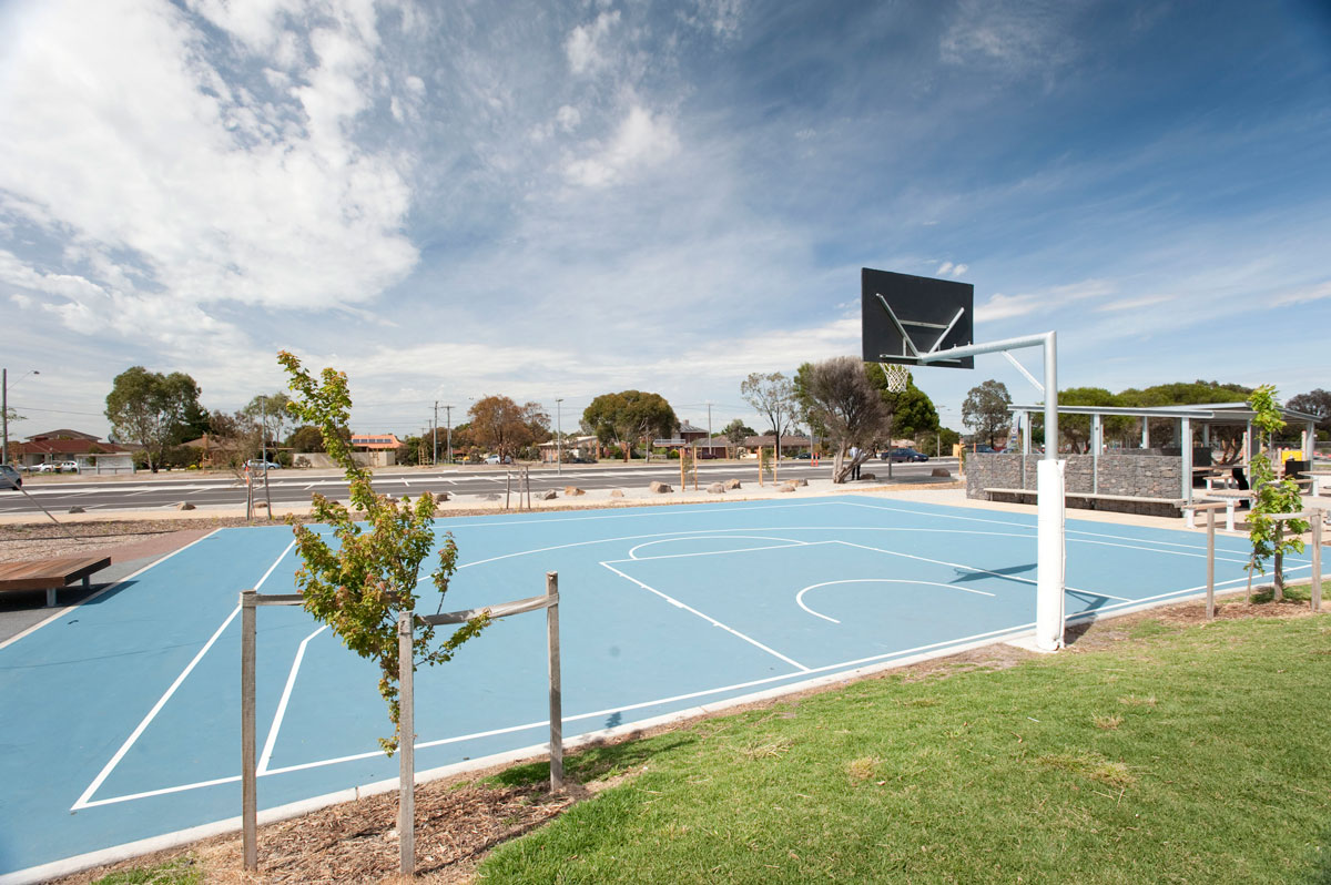 The play space includes a formal teenage level parkour course and basketball halfcourt along with a range of additional play elements which encourage balance, movement and coordination. It also incorporates sand play elements and has a wide-ranging focus for users of varying ages and abilities.